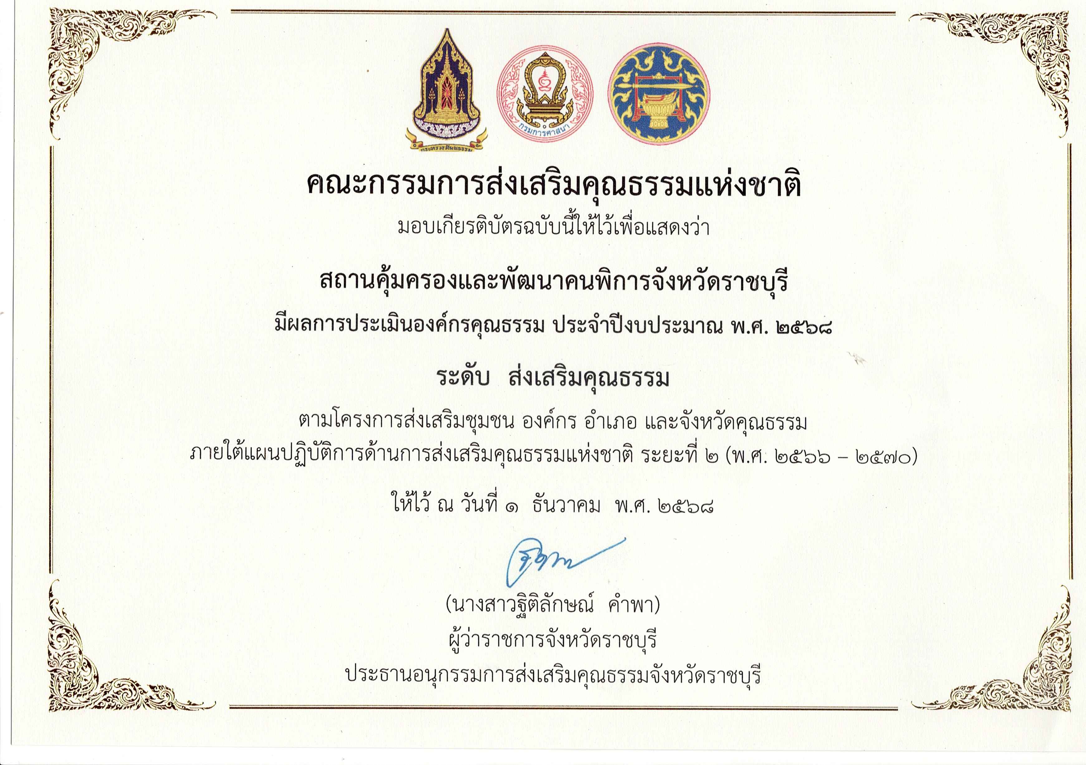 ผลการประเมินองค์กรคุณธรรม ประจำปีงบประมาณ พ.ศ. ๒๕๖๘